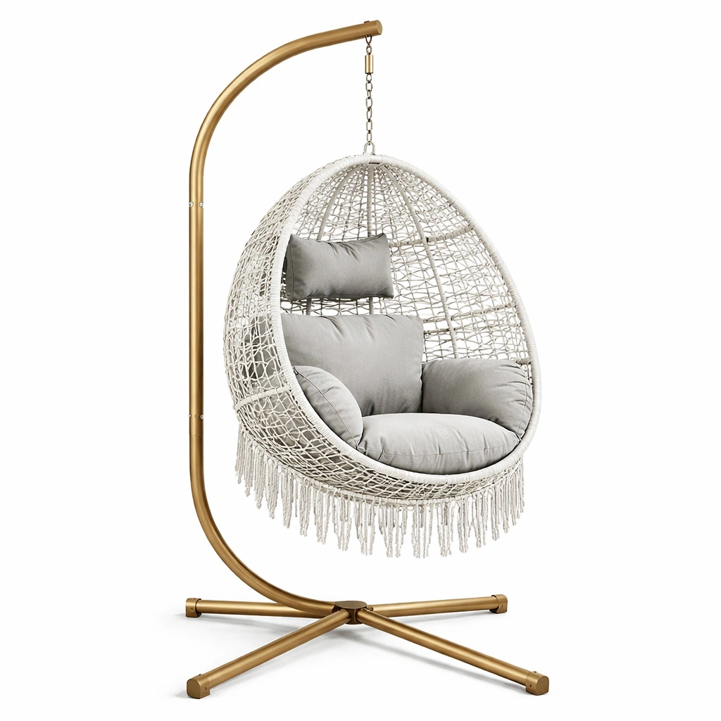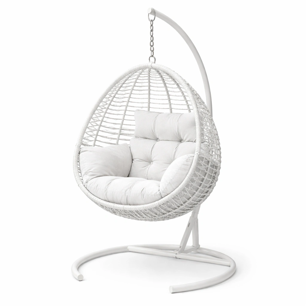 Hängesessel Rattan Weiß mit Stahlgestell und Polyesterkissen