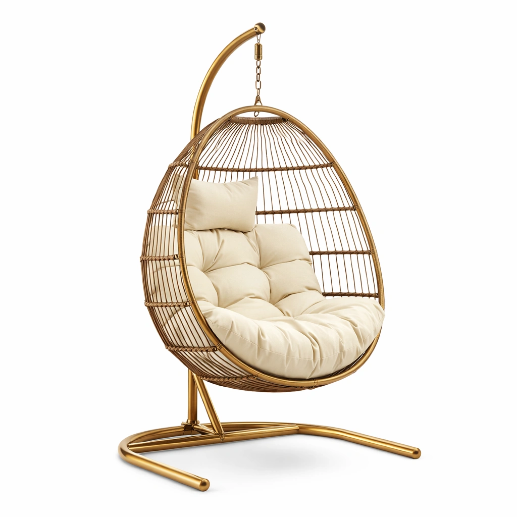 Hängesessel Metall Gold mit Polyesterkissen