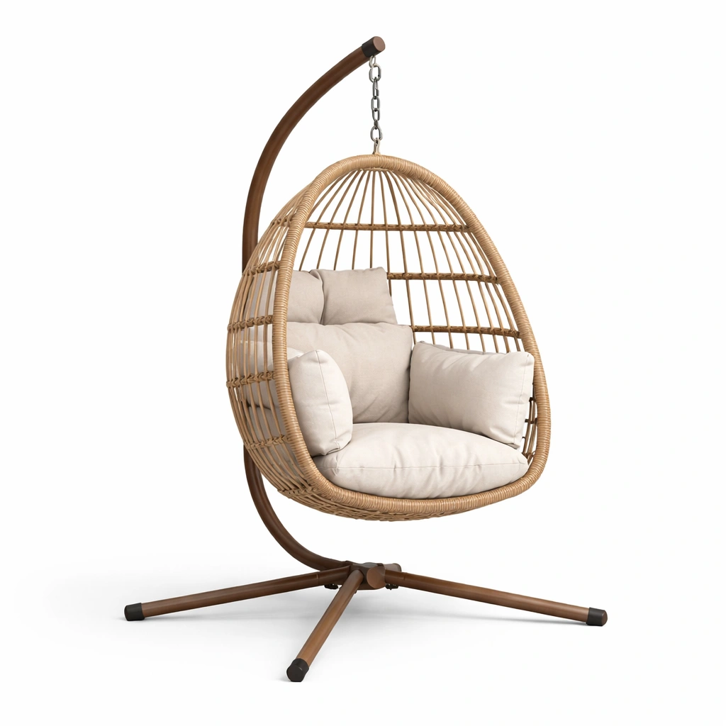 Hängesessel Rattan mit Kissen und Stahlgestell